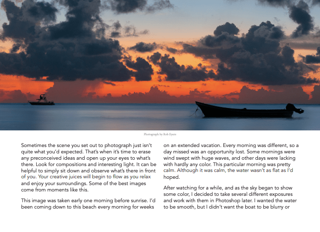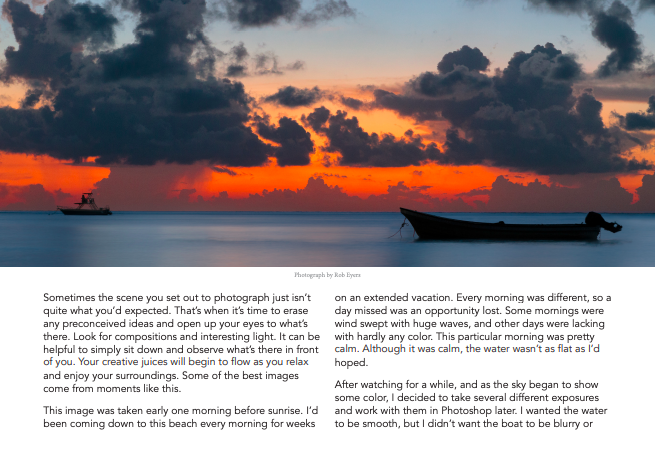 I also read this article on the class flipboard account titled How to capture dramatic Light in Landscape Photography“. This article gave 10 tips on how to improve your landscape photography game. Tip #1 encouraged readers to study up on the weather to see if there was going to be a chance of clouds, rain, etc. so you are able to best shoot what you are trying to capture. Clouds can be very interesting if done correctly. Tip #2 explained how the photographer was able to capture this image of lightening and fascinating colors by being prepared with weather knowledge and also light dramatization. Tip #3 reminded readers to stay in shape. The best shot is rarely right in front of you, it may require some hunting. This may be anything from hiking to climbing to get the best view. Tip #4 encouraged readers to spend more money on traveling and less money on expensive equipment. In photography it is hard to “force” a picture. Tip #5 told readers to invest in protective equipment for their gear. The author gave the example of how he his team were able to shoot in 70MPH winds in a desert and got amazing shots that would not have been a possibility without their protective gear. Tip #6 relates to the previous tip, but it pertains to the person behind the camera. This tip reminds readers of the importance of having protective and adequate equipment/gear with them to properly serve them in the environment that they are going to be shooting in. Tip #7 tells readers about the importance of post-processing (or editing) in software such as adobe lightroom & photoshop, etc. Tip #8 encourages readers to love what they do. If you truly love what you’re doing and what you’re able to capture the pictures will speak for themselves. Tip #9 tells readers to trust their gut and take chances. The author shares that especially when capturing dramatic light scenery, your gut feeling is usually right, and it’s best to quickly follow it because lighting can change instantaneously. Finally, tip #10 encourages readers to get out of their photography comfort zones. If you love to take pictures of the sky at sunset, try hiking at night and taking pictures of the moon and stars.
